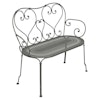 1900 benk fra Fermob. En klassisk benk av lakkert stål med en UV-bestandig overflate som ikke falmer i solen. Benken passer perfekt på balkongen eller terrassen, perfekt for å sitte ute og nyte sin morgenkaffe på. Den holdbare overflaten gjør at benken vil glede deg i mange år, den blir et fint fargeklikk i hagen eller på terrassen.