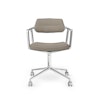 453 Svingstol med hjul kombinerer en lett aluminiumsramme med skinnpolstring, noe som skaper en tydelig kontrast mellom industrielle og organiske elementer, stolen er enkel å plassere i ulike miljøer og fungerer både som arbeidsstol og som fleksibelt sittemøbel i mer åpne arbeids- eller oppholdsarealer, hjulene gir bevegelsesfrihet mens stolens form sikrer et samlet og velbalansert uttrykk.