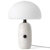 591 Sculpture bordlampe fra VIPP med et skulpturelt design som aldri går ut av stil med en avrundet lampeskjerm i opalglass med et mykt lys og en utvalgt fot i marmor. Den har en dimmerbryter. Lampen har en stilren tekstilledning.