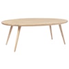 FSC-sertifisert Accent salongbord fra Mater. Bordet har en skulpturell, håndlaget estetikk med en oval bordplate med runde kanter og fire smale ben. En perfekt dekorativ artikkel som kan forvandle et helt vanlig rom til et slående og visuelt interessant rom.