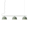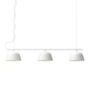 Ambit Rail taklampe fra Muuto med et minimalistisk, skandinavisk design med tre skjermer på rad perfekte for å sette opp over spisebord, kjøkkenbord eller arbeidsbord.