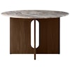 Androgyne spisebord fra Audo Copenhagen med et moderne, sofistikert design med et tidløst uttrykk perfekt til ethvert hjem. Det har en spennende lampefot i tre med en raffinert, rund bordplate som kombinerer form og materiale til en perfekt symfoni.