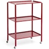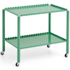 Serveringsvognen Arc fra HAY er en stilig og funksjonell tralle på hjul, perfekt til servering av mat og drikke eller som en smart oppbevaringsløsning i hjemmet. Den er laget av stål og har en pulverlakkert overflate i flere flotte farger. Den bølgeformede kanten forsterker designet og gir vognen et lekent uttrykk.