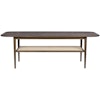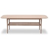 Athene salongbord fra Haslev med et dansk, elegant design i massiv eik med en profilert kant og en vakker hylle i rotting for ryddig oppbevaring.