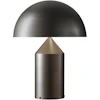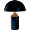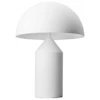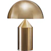 Atollo 233 bordlampe fra Oluce med et dekorativt, velkjent design i metall med geometriske former. Sylindrisk lampefot med en kjegleform på toppen og en hemisfærisk lampeskjerm. Dimmer på ledningen for å justere lyset. En perfekt lampe å ha i vinduet for å ha litt ekstra hygge i rommet.