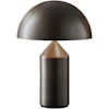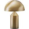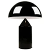 Atollo 238 bordlampe fra Oluce med et dekorativt, velkjent design i metall med geometriske former. Sylindrisk lampefot med en kjegleform på toppen og en hemisfærisk lampeskjerm med et direkte lys og et reflekterende lys. Ledning med av/på-knapp. En perfekt lampe å ha i vinduet for å ha litt ekstra hygge i rommet.