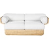 Basket 2-seter sofa fra GUBI med unikt design perfekt som en stilerklæring i interiøret. Design i premiumkvalitet med utmerket håndverk. Gjennomtenkt konstruksjon med robust stålramme, et skjell i håndvevd rotting og skumfylte, komfortable puter.