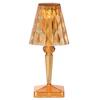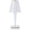 Battery bordlampe fra Kartell med et trådløst, oppladbar design i plast med en fasettert overflate for å reflektere lyset på en vakker måte og en inkludert lyskilde.