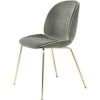 Beetle stol fra GUBI med et stilrent, ikonisk design med et mykt, polstret sete, vakre, eksklusive stopninger og slanke ben i messingbelagt stål. Stolen har organiske, myke linjer og herlig komfort med en elegant look perfekt for lange middager rundt spisebordet.
