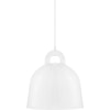 Bell pendel fra Normann Copenhagen med et industrielt design i aluminium og en enkel klokkeform. Den har en matt overflate med en hvit innside for å reflektere lyset på en vakker måte. Produktet er vakkert som det er, og også fint å kombinere med flere stykker i en gruppe.