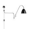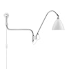 Bestlite vegglampe BL-10 har et justerbart stativ i krom og justerbar skjerm. Tekstilkledd ledning og strømbryter.