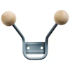 Kroken er laget av metall og utstyrt med to avrundede treknotter som skaper en balansert kontrast mellom industriell presisjon og naturlig varme. De doble knottene gjør det mulig å henge opp plagg, vesker eller tilbehør på en ryddig måte, samtidig som de bidrar til å holde tingene adskilt og lett tilgjengelige.