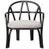 Bistra er en loungestol fra GUBI med en elegant design laget av rotting og møbeltrekk av høy kvalitet, ideell for moderne interiør.