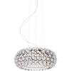 Caboche Plus Media pendel fra Foscarini med et unikt design med transparente, glitrende perler i PMMA og en innside i håndblåst glass for å gi et varmt og stemningsfylt lys. Den har et trepunkts opphengingssystem med kabler i stål. En perfekt taklampe for stuen eller spisestuen for å gi litt ekstra lys over bordet. CE-merket. Velg mellom ulike farger.