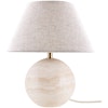 Vi presenterer Castello 24 bordlampe fra Globen Lighting, en lampe som forener naturlig skjønnhet med moderne design. Denne lampen har en solid base av naturstein, noe som gjør hver lampe unik. Den elegante lampeskjermen i lin og messingdetaljer tilfører et streif av raffinement, mens den beige tekstilkabelen gir en sømløs finish.