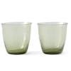 Glass fra &Tradition. Glassene har et sofistikert, elegant uttrykk perfekt til både hverdag og fest og et estetisk tiltalende design i munnblåst glass med et naturlig, bølget mønster og en vakker, kurvet kant på toppen.