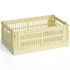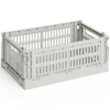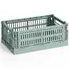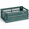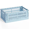Colour Crate fra HAY er en leken og funksjonell oppbevaringsboks med et karakteristisk perforert mønster. Den finnes i flere farger og størrelser, og kan stables i ulike kombinasjoner - perfekt for å skape orden i alt fra kjøkken og bad til kontor og garderobe. Med sin lette, men slitesterke design passer den like godt i skap som i åpne hyller eller på bord.