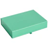 Colour Jewellery Box fra Hay er et praktisk smykkeskrin med levende design. Smykkeskrinet er laget av ekstra tykk, FSC-sertifisert papp med en blank overflate. Det magnetiske lokket åpnes for å avdekke flere rom, slik at du enkelt kan holde orden på dine dyrebare ringer, øredobber og halskjeder.