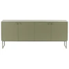 Deus skjenk fra Mavis med et elegant, pent design med mykt rundede kanter tilføyer det lille ekstra til designen. perfekte for ethvert moderne eller klassisk rom. Den er laget av lakkert MDF med en grønn, harmonisk farge, mykstengende dører og justerbare hyller på innsiden.