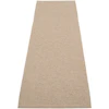 De små, opphøyde rutene er laget av en unik blanding av linvarp og PVC, og skaper en dynamisk tekstur som utfyller den jordnære, naturinspirerte fargepaletten på en vakker måte. De metalliske nyansene fremhever teppets naturlige glans og gir mønsteret dybde og liv.