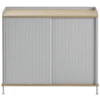 Enfold skjenk fra Muuto med et moderne design med et industrielt uttrykk til ditt hjem perfekt for praktisk lagring. Den er laget av lakkert stål med en topplate, en bunn i solid eik og plassbesparende skyvedører.