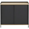 Enfold skjenk fra Muuto med et moderne design med et industrielt uttrykk til ditt hjem perfekt for praktisk lagring. Den er laget av lakkert stål med en topplate, en bunn i solid eik og plassbesparende skyvedører.
