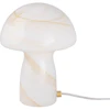 Fungo bordlampe fra Globen Lighting med et naturinspirert design i glass med et uregelmessig, beige mønster. Lang ledning med en strømbryter og et støpsel. Hver artikkel er unik og kan variere litt i utseende.