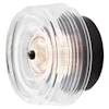 Vegglampen Glow fra Loom Design kombinerer moderne design med sofistikert belysning. Lampen har en rund base og en gjennomsiktig akrylskjerm med riflet overflate og dekorativ fordypning, noe som skaper et slående samspill mellom lys og skygge.