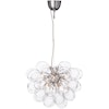 Forvandle hjemmet ditt med pendellampen Gross fra By Rydéns - et luksuriøst midtpunkt som kombinerer eleganse med moderne design. Denne bemerkelsesverdige pendellampen består av trettisju delikate, munnblåste glasskuler, utformet som atomer, som sammen skaper en blendende sky av lys. Hver kule reflekterer lyset på en unik måte og tilfører et magisk skimmer til soverommet, stuen eller ethvert annet rom som fortjener et statement.
