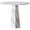 Hexagon-spisebord fra Dusty Deco med et unikt sekskantet understell og en rund bordplate i massiv marmor som utstråler eleganse.