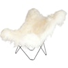 Iceland Mariposa Butterfly fra Cuero, en ny og moderne design av den klassiske flaggermusstolen. Stolen er produsert i de dype skogene i Småland, der kvalitet og miljøtenking er høyt prioritert. Stolen er et resultat av solid håndverk, nøye utvalgt islandsk lammeskinn og ekstra hardt svensk stål. Denne modellen er mer enn 30% større enn en vanlig flaggermusstol, noe som gir deg mye bedre komfort og stabilitet. Hvis du tar godt vare på lenestolen din vil den vare i flere generasjoner, den vil bare bli finere og finere med tiden. Dette designikonet finner lett sin plass i ethvert rom, når du sitter i den kan du nyte den herlige omfavnende følelsen. Den perfekte lenestolen å krype ned i med en kopp varm sjokolade. Lammeskinnet er tilgjengelig i flere forskjellige farger, korthåret (Shorn) eller langhåret (Wild) skinn, med en sort eller kromfarget ramme. I samme modell finnes også Pampa Mariposa, med italiensk skinn av høy kvalitet. Det finnes også krakker i flere forskjellige utførelser som matcher med stolene.