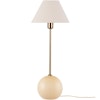 Lys opp rommet ditt med Globen Lightings Iris 20, en bordlampe som forener glad design med et snev av tradisjon. Lampen er skapt av den talentfulle Erika Norén, og har en karakteristisk kuleformet glassfot prydet med sjarmerende luftbobler, som hver og en er unik for ditt eksemplar. På toppen av denne herlige designen finner du en lampeskjerm i bomull i harmoniske toner, som gir en mild og stemningsfull belysning som passer perfekt i en koselig krok eller på sidebordet i stuen.