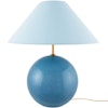 Iris 35 bordlampe fra Globen Lighting med et fargerikt design og tradisjonelle former. Den har en rund lampefot med uregelmessige, dekorative luftbobler og en klassisk lampeskjerm i bomull. Perfekt for å plassere i et dypere vindu, på sidebordet eller på nattbordet.