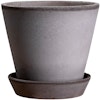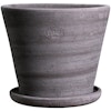 Julie krukke fra Bergs Potter med et håndlaget design i høykvalitets terrakotta med en dekorativ kant og en fin, uglasert overflate med en grå finish. Krukken har et inkludert fat. Miks og match forskjellige størrelser, farger og materialer for å skape din personlige stil.