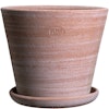 Julie krukke fra Bergs Potter med et håndlaget design i høykvalitets terrakotta med en dekorativ kant og en fin, uglasert overflate med en blekrosa finish. Den har et inkludert fat. Miks og match forskjellige størrelser, farger og materialer for å skape din personlige stil.