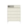 Keep kommode fra Montana med et praktisk, allsidig design med et moderne uttrykk. Den har fire romslige skuffer og en avtagbar toppdel med en liten skuff og en åpen hylle. Den er laget av lakkert MDF med flotte metallben. Velg mellom ulike farger.