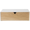 Keep-hyllen kombinerer minimalistisk design med praktisk funksjonalitet. Den er laget av resirkulert stål med en lakkert overflate og en elegant eikeskuff, og tilfører et streif av naturlig varme til ethvert rom.