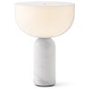 Kizu bordlampe fra New Works med et skulpturelt, bærbart design med dristige former. Den har en oval lampefot i marmor med en hemisfærisk lampeskjerm i akryl. Lampen har en dimmerknapp på lampehodet med tre forskjellige lysstyrker til flere anvendingsområder og en lang batteritid.