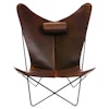 KS lenestol fra OX Denmarq, designet av Dennis Marquart. Lenestolen er også kjent som den klassiske "Flaggermuslenestolen" på grunn av dens spesielle utseende. Konstruksjonen er enkel og samtidig elegant – lenestolen består av en stålkonstruksjon med et sete ev 100% vegetabilisk garvet skinn med en tykkelse på minst 3 mm. Ettersom skinn er et naturmateriale kan enkelte skjønnhetsfeil forekomme. Materialet vil få en egen dybde og patina med tiden, ettersom stolen brukes og utsettes for slitasje og lys. Møbelknotter må monteres under bena. I motsetning til Trifolium lenestol fra samme merke er denne lenestolen høyere og utstyrt med en fin nakkestøtte. Velg mellom flere forskjellige design.