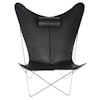 KS lenestol fra OX Denmarq, designet av Dennis Marquart. Lenestolen er også kjent som den klassiske "Flaggermuslenestolen" på grunn av dens spesielle utseende. Konstruksjonen er enkel og samtidig elegant – lenestolen består av en stålkonstruksjon med et sete ev 100% vegetabilisk garvet skinn med en tykkelse på minst 3 mm. Ettersom skinn er et naturmateriale kan enkelte skjønnhetsfeil forekomme. Materialet vil få en egen dybde og patina med tiden, ettersom stolen brukes og utsettes for slitasje og lys. Møbelknotter må monteres under bena. I motsetning til Trifolium lenestol fra samme merke er denne lenestolen høyere og utstyrt med en fin nakkestøtte. Velg mellom flere forskjellige design.