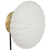 Kumu vegglampe fra Hübsch med et elegant design med en messingfarget veggfeste og en dekorativ, hvit lampeskjerm i glass for å gi et varmt og behagelig lys perfekt til stuen, gangen eller soverommet.