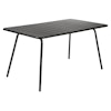 Luxembourg bord fra Fermob. Et stødig og enkelt hagebord i fin farge som blir en passende detalj på altanen, uteområdet eller på gresset. Det kompakte bordet Luxembourg 143x80 cm har et paraplyhull i midten.