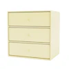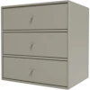 Mini 1007 hylle fra Montana med et minimalistisk design perfekt for det moderne hjemmet. Den er laget av tynn, lakkert MDF og har tre skuffer for forskjellige oppbevaringsmuligheter. Kombiner ulike modeller og farger for å skape din egen fine blanding.