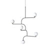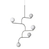 Mobil taklampe fra Pholc, designet av Monika Mulder. Denne praktfulle lampen har en vakker design med kuler som sitter på bøyde armer. Opalglasset og metallet utfyller hverandre. Leveres med en tekstilledning. G9 lyskilde, ikke inkludert.