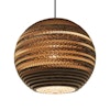 Moon taklampe fra Graypants. En vakker lampe produsert av resirkulert bølgepapp som er behandlet med et giftfritt brannhemmende middel. Alle delene er skåret med laser og er deretter montert for hånd, som innebærer at lampene kan variere litt i form og størrelse. Alle lampene er derfor unike. Denne lampen ustråler en harmonisk og koselig følelse og tar seg godt ut over spisebordet. Lampen har en 2 meter lang sort tekstilledning og en matchende sort takkopp av pulverlakkert stål. Lampen er utelukkende egnet til bruk i tørre miljøer.