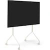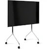 Stativets mykt buede former og lekne silhuett står i kontrast til den robuste stålkonstruksjonen og skaper et utseende som både er funksjonelt og formtilpasset. De stillegående møbelhjulene med mykt tråkk skåner gulvet og gjør det enkelt å flytte TV-en uten problemer.