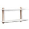 Nivo Large F vegghylle fra Gejst med et minimalistisk design i høykvalitets tre med to hyller og en elegant funksjon for ryddig oppbevaring.