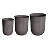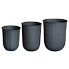 Out Stripe krukker fra DBKD med et stilrent design i tynnmetall i forskjellige størrelser med vakker, holdbar glasering perfekt til utendørs bruk og dekorative striper på utsiden. Velg mellom ulike farger.