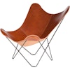Pampa Mariposa Butterfly stol fra Cuero, en ny og moderne design av den klassiske flaggermusstolen. Stolen er produsert i de dype skogene i Småland, der kvalitet og miljøtenking er topp prioritert. Stolen er et resultat av solid håndverk, laget av nøye utvalgt skinn fra Italia og ekstra hardt svensk stål. Denne modellen er mer enn 30% større enn den vanlige flaggermusstolen, noe som gir deg mye bedre komfort og stabilitet. Hvis du tar godt vare på lenestolen din vil den vare i flere generasjoner, den vil bare bli finere og finere med tiden. Dette designikonet finner sin plass i alle rom. Når du sitter i den kan du nyte den luksuriøse følelsen av kvalitet, sammen med duften av eksklusivt skinn. Stolen finnes i flere forskjellige skinnfarger, med en sort eller forkrommet ramme. I samme modell finnes også Iceland Mariposa, med mykt og herlig fåreull. Det finnes også en krakk i samme design for å matche med stolen.