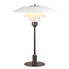 PH 3½-2½ bordlampe fra Louis Poulsen, design Poul Henningsen. PH 3½-2½ Bordlampe er designet utfra prinsippet om et reflekterende flerskjermsystem som er basert på en logaritmisk spiral med lydkildens midtpunkt i spiralens sentrum. Det munnblåste opalglasset i tre sjikt er blankt på utsiden og sandblåst på innsiden, og gir et mykt og diffust lys. Historien bak produktet: PH 3/2 Bordlampe er medlem i familien PH 3 med skjerm og prinsippet bak PH 3-skjermarmaturen ble utviklet i løpet av noen vintermåneder i 1925-26 for en stor utstillingshall i København, Danmark som kalles "Forum" Dette sa Poul Henningsen (PH) om sin nye armatur i 1926: "Den virkelige innovasjonen i PH-lampen er att den produserer belysning som er både blendingsfri og økonomisk. Det er ganske enkelt å skape blendingsfritt lys (indirekte og sterkt avskjermet lys) hvis en del av lyset tillates å forspilles, og det er like enkelt å lage armaturer som er høyeffektive hvis man ignorerer det faktum at det irriterer øyet (sterk speilrefleksjon osv.), men det er en kunst å gjøre lyset både økonomisk og blendingsfritt.